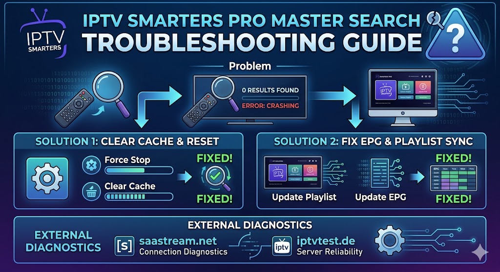Technology is wonderful, but occasional hiccups can occur. If you have carefully followed the steps to Enable IPTV Smarters Pro Master Search Feature, but the iptv smarters pro master search is returning zero results, spinning endlessly, or crashing the app, do not panic. Here are the most effective, proven troubleshooting methods to get you back to streaming.
